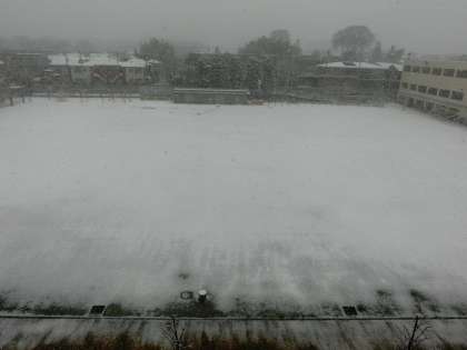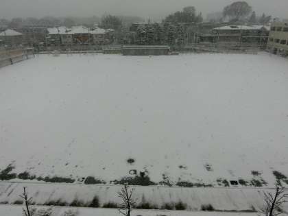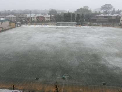 どんどん積雪が増えていく様子が一目瞭然です。一時間ごとに4階の教室から撮影した3枚の画像です。