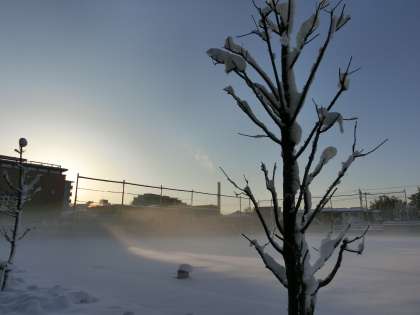 朝日が差し込んできましたよ。あまりの美しさに、ついシャッターを切ってしまう朝です。子どもたちも、清々しい気持ちで、銀世界の朝を体感することでしょう。