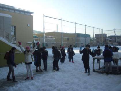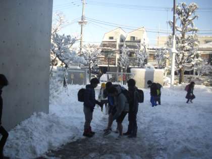 子どもたちも元気に登校してきました。栽培委員会の子どもたちがならべた芦花小の文字のプランターも雪がかぶり、また違った表情を見せていますよ・・・