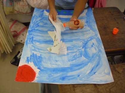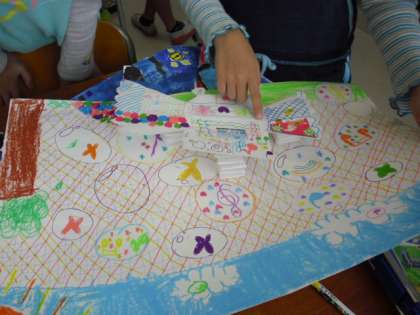 3年生の図工の授業の様子です。平面作品「夢ののりもの」が完成に近付いてきました。夢ののりものに立体感をあたえるために画用紙への接着の仕方を工夫しています。浮き出るような感じです。自分たちで想像した世界へ、夢ののりものに乗って出発です。