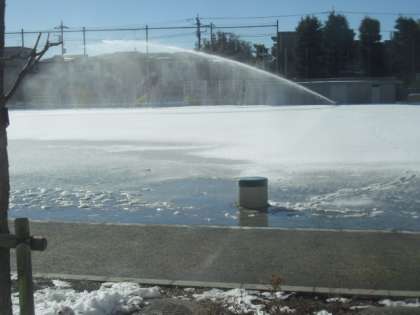 現在学校の校庭も、早く体育などの活動ができるよう、雪を解かす作業を進めています・・・・