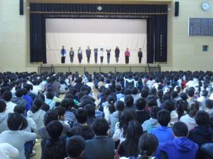今日は代表委員会の子どもたちが、寸劇をはさみながら校内での模範となる行動を紹介してくれました。朝会や集会後に行進をしていますが、6年生がいつも手本です。6年生のおかげで他の学年の行進も上手になっています・・・・