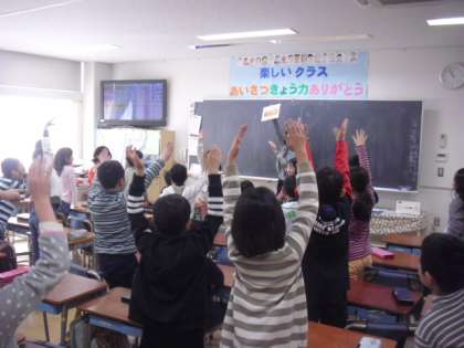 ゲストティチャーの先生とともに進めている外国語活動〜