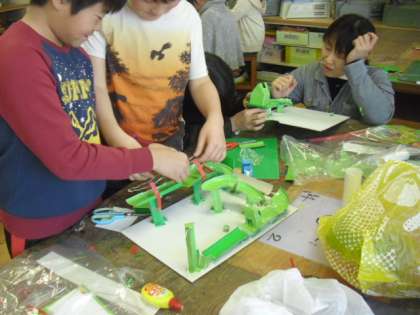 ビー玉がうまく転がるか試しながら改善を加えていきましたね!