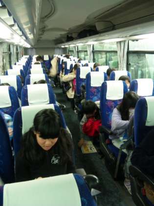 製鉄所の見学を終え、バスに乗りました。安全に気をつけて日々作業に取り組んでいることも含め、鉄ができるまでの学びの多い見学となりました。