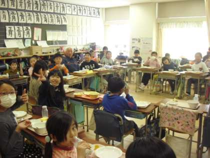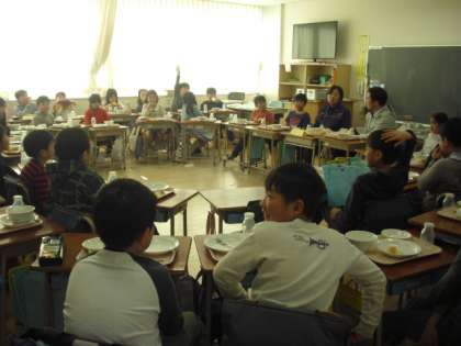 さまざまなお話をお聞きした消防団の方々と、一緒に給食を食べました〜