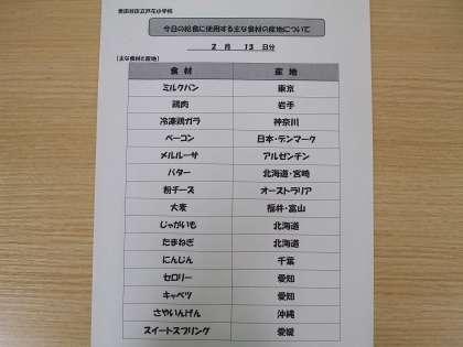 今日は「イギリス料理」給食でした。「ジラフ・ブレッド」は、表面の模様が“キリン”に似ているところから、このように呼ばれています。上新粉で生地を作っているので、パリパリに焼き上がります。