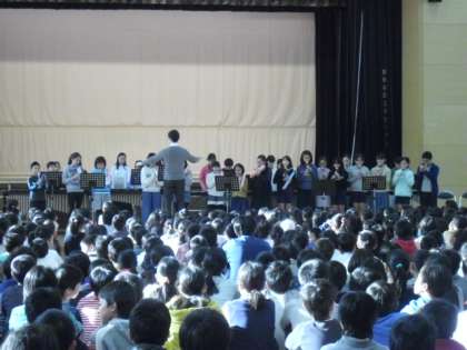 集会の最後は行進して教室へ・・・・