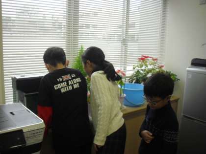 出席カードを届けてくれる子どもたちは、校長室のメダカを気にかけていつものぞいてくれます。