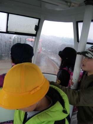 よみうりランド駅に到着し、ゴンドに乗って移動しました。