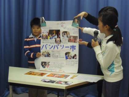 ホームステイの様子をまとめてくれたものを1階に掲示しました。廊下を歩く子どもたちも立ち止まって興味深く見ています。