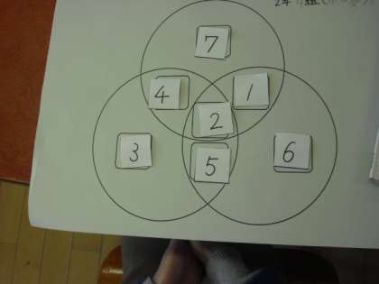 学習も2年のまとめの時期に・・・・今日は数字カードを使って大きな数、小さな数を構成したり、円の中の数字を合わせて、全部同じ数になるようにカード並べをしたりと、楽しみながら学習していました〜。