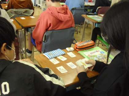 音で伝えられた単語の職業カードを手元から選び、並べる、活動形式の学習です。うまく聞き、選ぶことができたでしょうか。