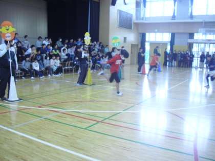 今日は体育館で思い出づくりの運動会をしました。