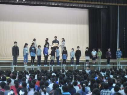 最後は看護当番から目標「おはよう こんにちは あいさツツキ」の話でした。6年生からあいさつを広める提案を含む寸劇もありました。みんなで気持ちの良いあいさつを広めていきましょうね。