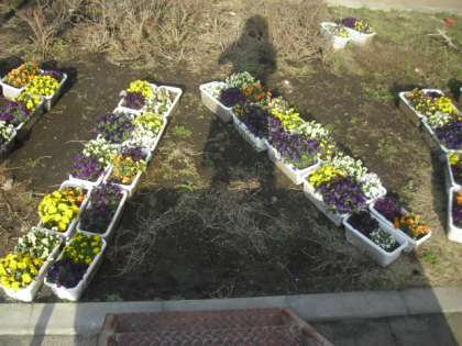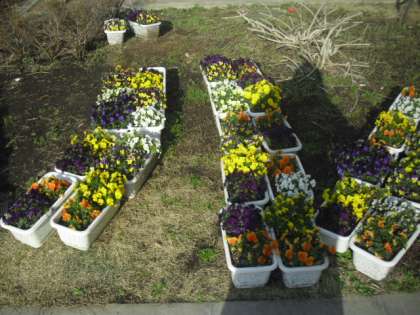 プランターを使っての文字制作・・・