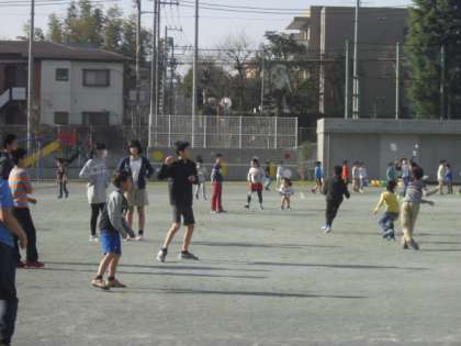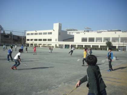 校庭では遊具を使って今日も元気の遊ぶ子どもたちです〜。