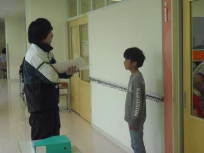 通知表渡し・・・