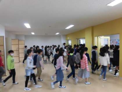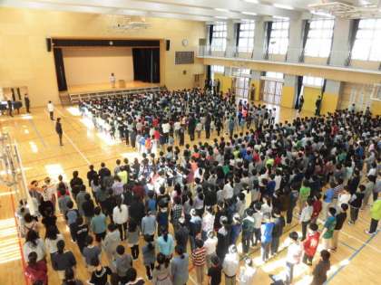 全校朝会では校長先生のお話のあと、看護当番の先生から今週の生活のめあてについてお話がありました。また、進級して最初の全校朝会でしたので、退場の仕方を確認しました。4年生から行進をしながら、静かに退場をしました。