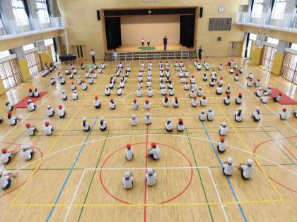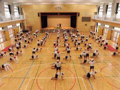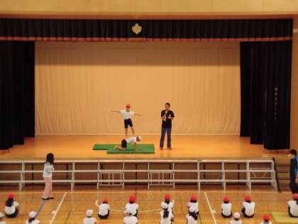 6年生は運動会の団体演技「新組体操」の練習を始めました。12日(木)は、2人組の演技の練習を行いました。ステージに立つ友達の手本を見ながら、真剣に行っていました。整列して立つだけでもそろっていて美しく感じました。