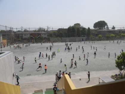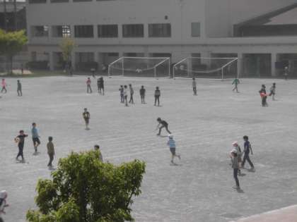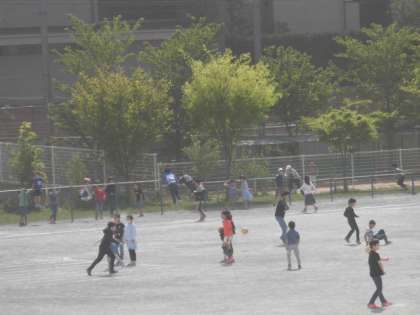 新学期が始まってからずっと晴天が続き、子どもたちは校庭で元気に遊んでいます。おにごっこ、ドッジボール、鉄棒、長なわなど、友達といっしょに遊ぶ姿がありました。日差しもあり、「暑い!」と言いながら教室にもどる子どもたちがたくさんいました。