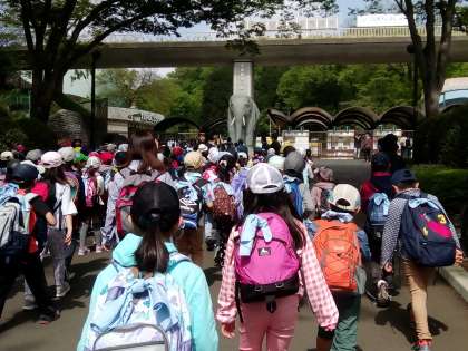 3年生は多摩動物公園まで電車で移動しました。電車を待つ間や車内では静かに過ごすことができました。動物公園に致着するとすぐに、ゾウの像の前でクラスごとに集合写真を撮りました。園内では6か所のポイントをめぐり、お弁当を食べました。保護者の皆様には早朝よりお弁当をはじめ準備等をありがとうございました。