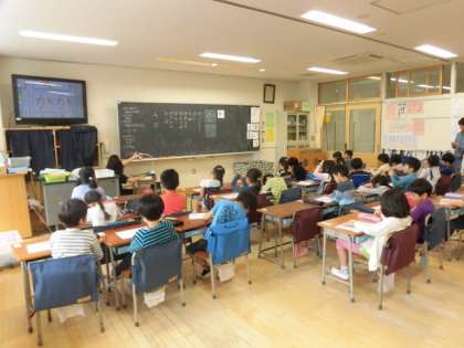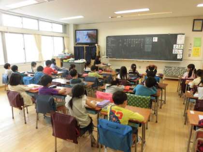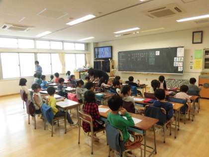 25日(水)の3時間目、1年4組は講師の先生とともに国語の学習をしました。今回は、ひらがなの「か」の練習をしました。書き方を声に出しながら、一画ずつ書く練習をしました。講師の先生は、えん筆の持ち方や姿勢なども声をかけていました。