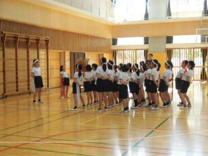 24日(火)から応援団の朝練習が始まっています。赤組、白組の応援団長の指揮のもと、声を出し、ふり付けを覚えながら縣命に練習をしていました。開始3日目の26日(木)も気合いの入った練習をしていました。徐々に形ができてきています。