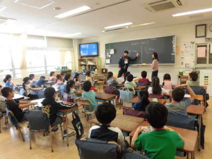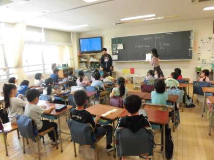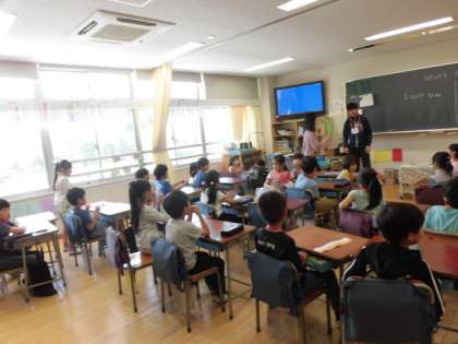 26日(木)、2年生は外国語活動を行いました。2組では、担任の先生とALTの先生とともに「Wha’t this?」の練習をしていました。2年生は年間で10時間取り組みます。
