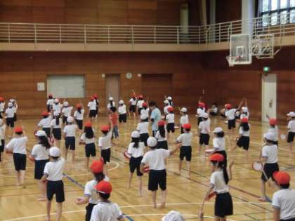 8日(火)の5時間目、4年生も団体演技の練習を行いました。場所は、中学校の体育館です。小中一体型の校舎だからこそできることです。体育館いっぱいに広がり、リズムに乗って踊っていました。更衣室から移動する中学生が4年生の練習に目をとめ、「なつかしい。」「がんばれ」と声をかけていました。
