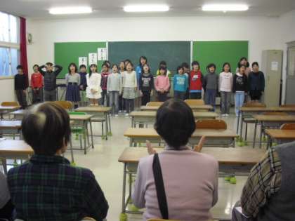 会食後は、第2音楽室に場所を移して、歌を聴いていただきました。「君をのせて」です。子どもたちの歌う様子をしっかりと見つめて聴いてくださいました。様々な人との出会いが子どもたちのかかわりを豊かなものにしています。