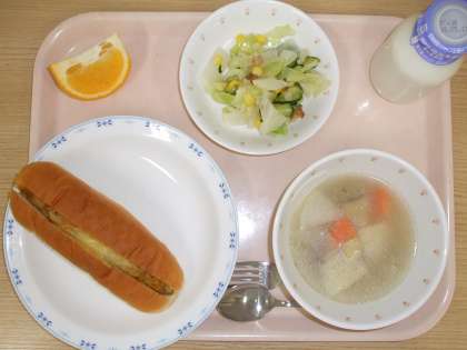 今日の給食には、甘夏を使いました。ちょうど今の時期の春から初夏が旬の果物です。皮が厚いため切るのが大変でしたが、果肉は果汁をたっぷりと含み、甘酸っぱく、ぷちぷちとした食感を楽しめました。