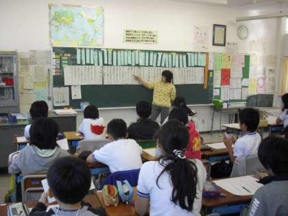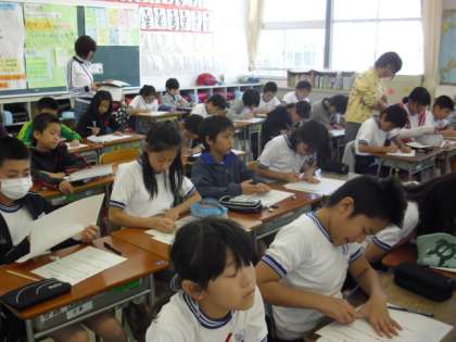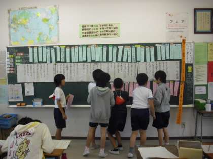5年生の道徳の授業の様子です。テーマは「今、いきていることを大切に自分の生き方を考える」です。導入では、子どもたちそれぞれが考える「生きる」について短冊に記入し、全員が発表しました。この授業も道徳のねらいと合わせて、「生き方」を考えるキャリア教育のねらい(将来設計能力の育成)も踏まえたものです。