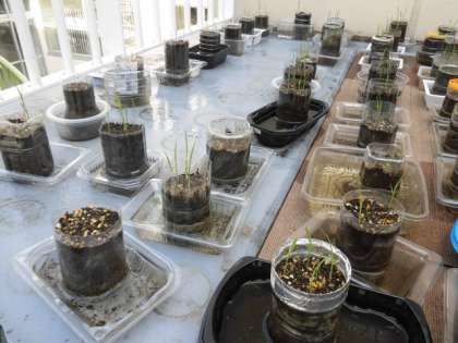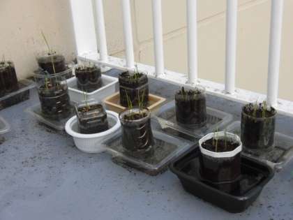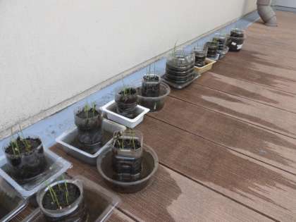 5年生は総合的な学習の時間に「稲作物語」と題して米作りに取り組んでいます。4月26日に「イネ」の種まきをしましたが、2週間でここまで育っています。運動会の練習の合間を見付けて、水やりを忘れずに行っています。