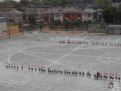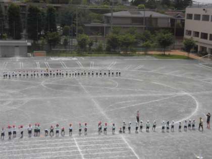 17日(木)の4時間目、1年生が運動会で発表する演技「This is me」の練習を行いました。クラスカラーの手ぶくろをはめて踊りました。途中に隊形移動をしますが、自分の場所をしっかり覚えて移動できました。