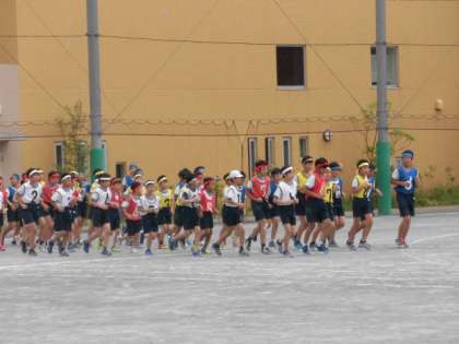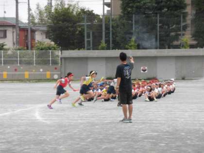 高学年リレーの練習は、給食準備時間を利用して行われてきました。17日(木)は、入場門からの入場に始まり、女子男子の順で本番さながらの練習をしました。たがいに声援を送る姿があり立派でした。