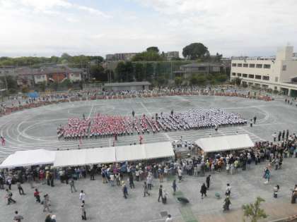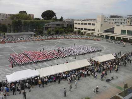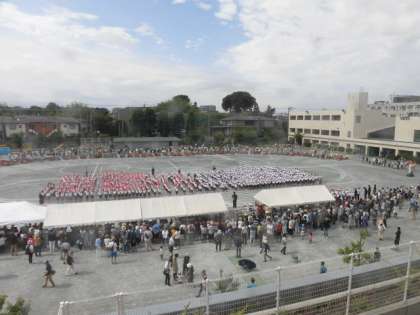 運動会の開会式の様子です。子どもたちの引きしまった表情がありました。開会式までに5年生は1年生のいすだしのお手伝いをしていました。上級生のおかげで、朝のスタートが気持ちよくきれました。開会式では6人の1年生が元気よくことばを述べました。