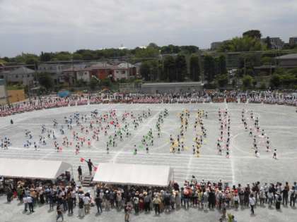 2年生は、クラスカラーの旗を手に笑顔で踊りました。クラス順に旗をふる姿がかっこよかったです。