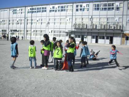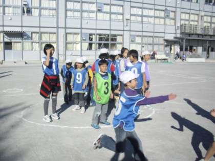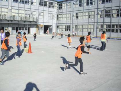 朝のフレンドワールド(異学年遊び)の様子です。校庭で2年生と5年生が鬼ごっこをして遊んでいます。1年生と6年生、3年生と4年生は室内遊びです。上学年が下学年をリードしながら進めています。校庭では5年生が2年生に遊びのやり方を説明しながら楽しく遊びました。遊びを通して互いの立場への理解を深めていきます。