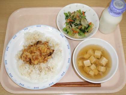 今日のかき揚げは多くの具材を使い、給食室でひとつひとつ揚げました。豚肉、たまねぎ、にんじん、ごぼう、さつまいもなど野菜もたくさん食べられる大満足のメニューです。