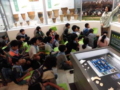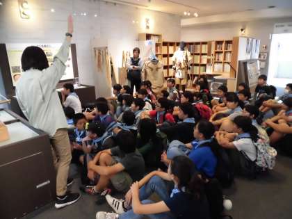 5月30日、6年生は校外学習で、東京都埋蔵文化財センターと、こころの劇場に行ってまいりました。多摩センター駅から10分とかからない場所に「遺跡庭園 縄文の村」を併設する東京都埋蔵文化財センターは、豊かな自然に囲まれ、いにしえの時代に気軽にタイムスリップできる、大変魅力的な施設です。まずはセンターの方とご挨拶。館内をどう巡るのか、どんな体験ができるのかをご説明いただきました。