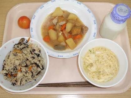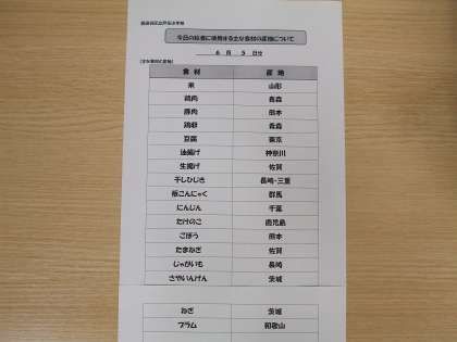 今日のデザートは、旬の果物「プラム」の登場です。やわらかい果肉に、たっぷりの果汁、そして甘酸っぱい味が特徴の果物です。家庭でも、旬を迎えたいろいろな種類の果物を、ぜひ食べて欲しいです。