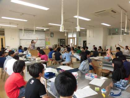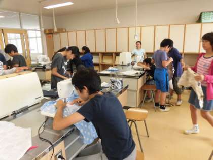 6日(水)の3・4時間目、6年4組は家庭科の授業でした。題材名「作って使おう!MYエプロン」の最終回で、エプロンを美しく仕上げることを目標に取り組みました。最初に、手順の確認をしました。エプロンが完成した人は、自分の余り布を使って三角巾やきん着袋つくりをしていました。自分のすることがわかっているので、作業がどんどん進みました。いらない糸を切り、アイロンをかけ、ひもを通したら完成です。子どもたちは、自分だけのエプロンを身に付けてとてもうれしそうでした。