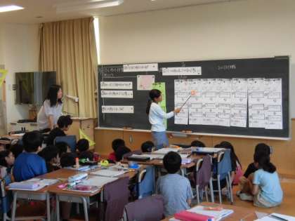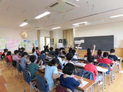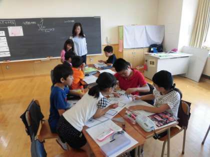 7日(木)の3時間目、4年3組と4組は算数の授業でした。習熟度別に行い、今回はひし形の性質を使ってかき方を考えました。グループでかき方を考え、ワークシートに手順を書きこんでいました。分度器作戦のグループが1つ、他のグループはコンパス作戦で考えました。
