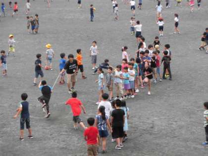 12日(火)は前日の雨が上がり、むし暑いくらいの陽気になりました。中休みになると子どもたちは元気いっぱいに外遊びをしていました。学級によっては長なわとびの練習をしている姿もありました。