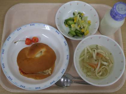 今日の給食は、旬のさくらんぼとアスパラガスを使いました。さくらんぼは旬が6月〜7月上旬と短く、実もやわらかいので長く保存ができません。ぜひ今食べておきたい果物のひとつですね。