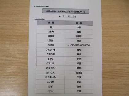 6月15日の「しょうがの日」にちなんで、今日の主菜は「さわらのしょうが風味焼き」でした。「しょうが」は調味料としてだけでなく、体によい食材として、生活にも取り入れられています。