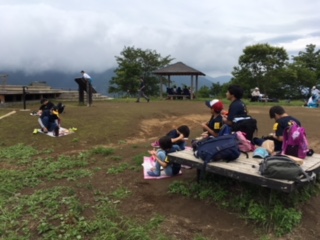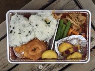 三湖台でお昼です。宿舎で作ってくださったお弁当。いただきます。