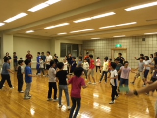 今日の夜のイベントは四校交流会の子ども会です。祖師谷小、明正小、烏山小の皆さんと歌を歌ったりゲームをしたりしました。