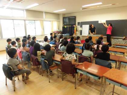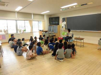 28日(木)の朝、1年生の各教室では保護者の方による「読み聞かせ」が行われていました。学級によりすわり方には違いがありますが、子どもたちのお話の世界を楽しむ姿は同じでした。写真は、3組、4組、5組の様子です。